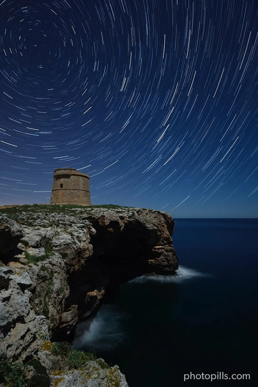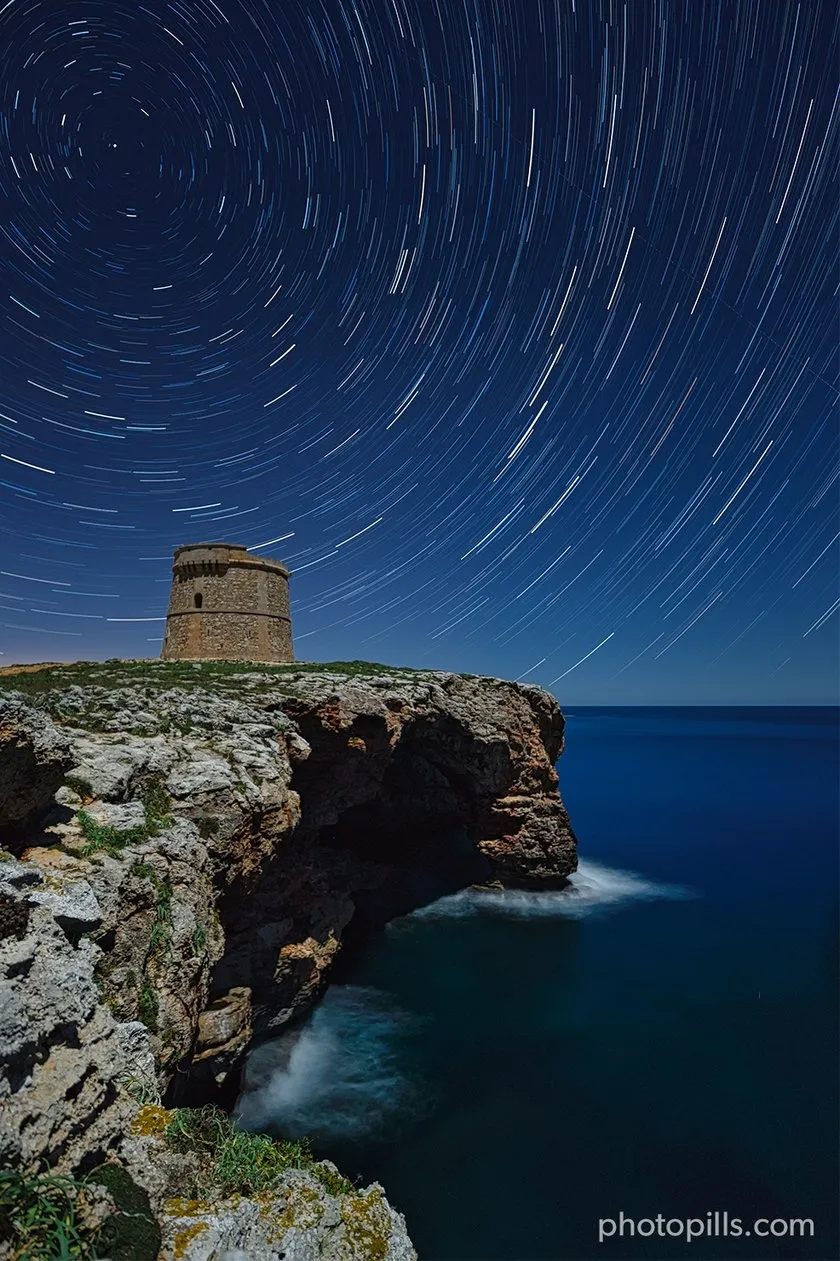 The Moonlight allowed me to illuminate the interior of the caves that you can see below this defense watchtower built during the time the British occupied the island of Menorca.