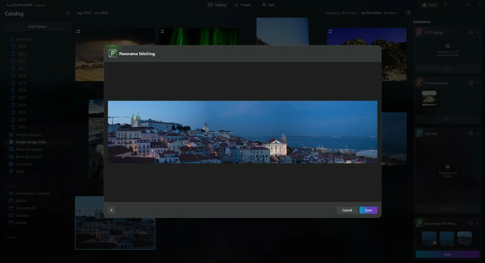 Next, it’s time to make your photo look its best. If you have more than one photo you want to turn into a big panorama, there’s a neat trick you can use. It’s called AI panorama stitching, and it’s like magic. A program called Luminar Neo can take your photos and stick them together all by itself. It’s really easy and does a great job.