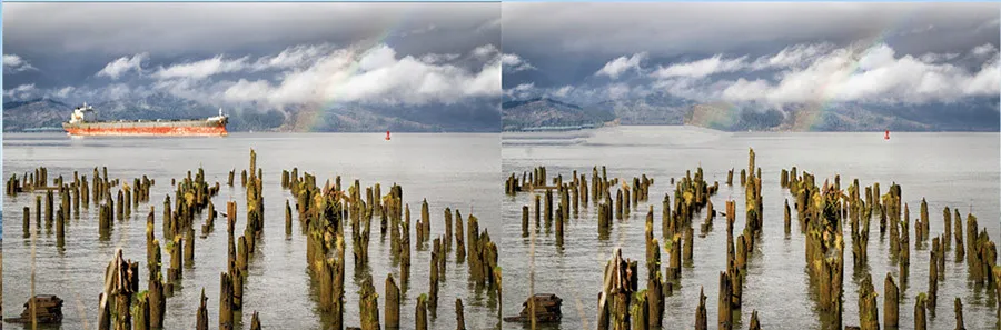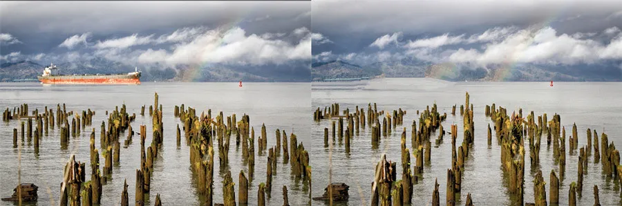 Take the photo below, for example. You can see in the shoreline and repeated rainbow that the healing brush/eraser didn’t work so well.