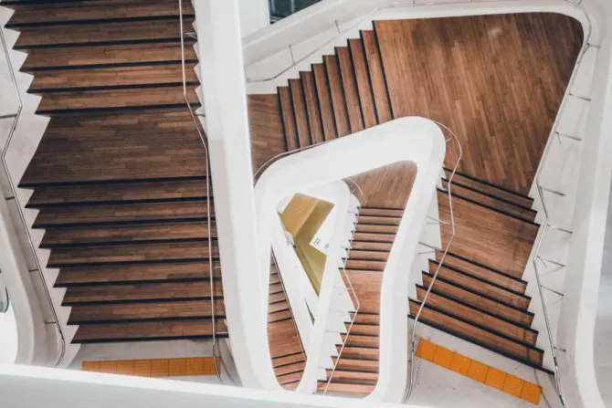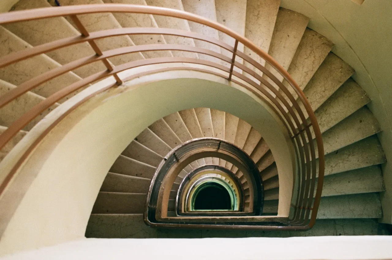 Examples of linear perspective photography can be found in a huge number of works. It is characterized by parallel leading lines, which on the horizon converge to a single point. Various objects can be used to express this composition: road, fence, rails, and row of houses facing each other. The lines do not necessarily have to be parallel. The spiral staircase which takes the eye into the depth of the spiral may also serve as an example of linear perspective in photography. This technique enriches the frame with dynamics and rhythm. The depth of perspective comes from the diagonals, the look seems to fly to the horizon as if clinging to them.