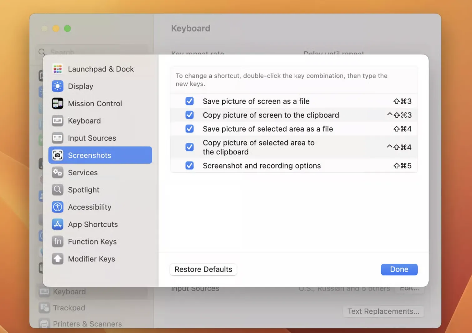 the combination Shift + Command (⌘) + 5 for access to the screenshot toolbar;