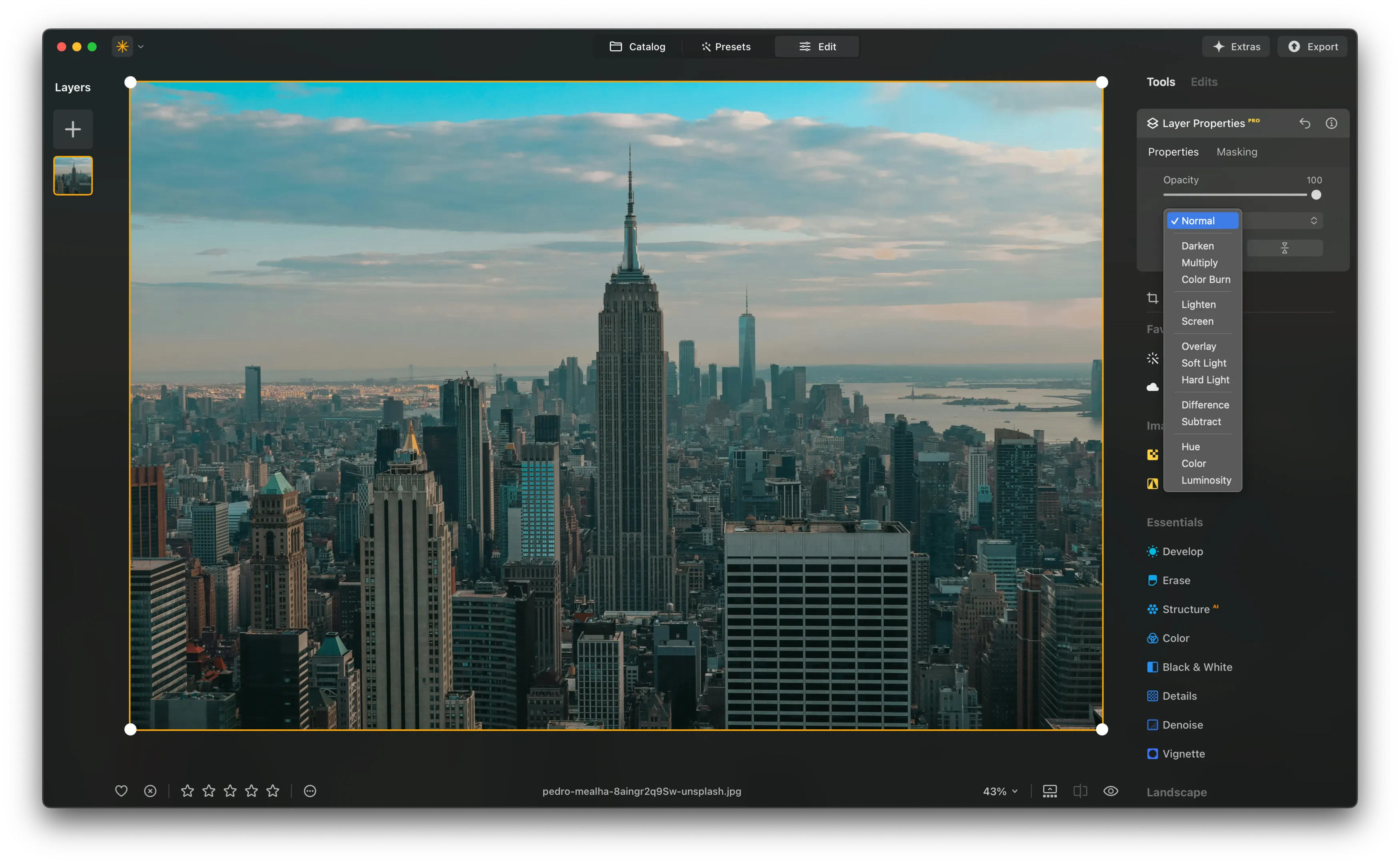The built-in Mac editor offers basic features, which may be enough for quick edits without special visual effects. However, for professional work with graphics, advertising, or educational presentations, third-party software like Luminar Neo is vital. It fills the gap left by macOS’s limited functionality by providing:
