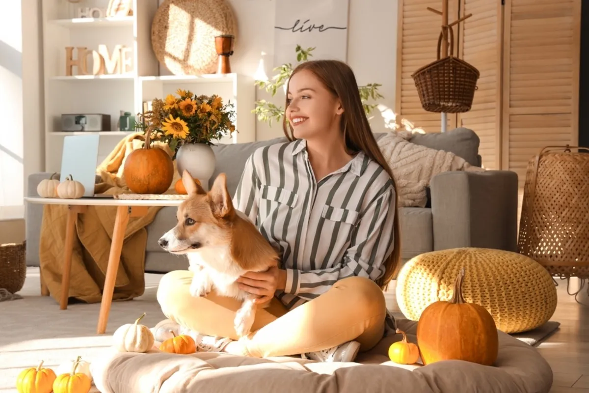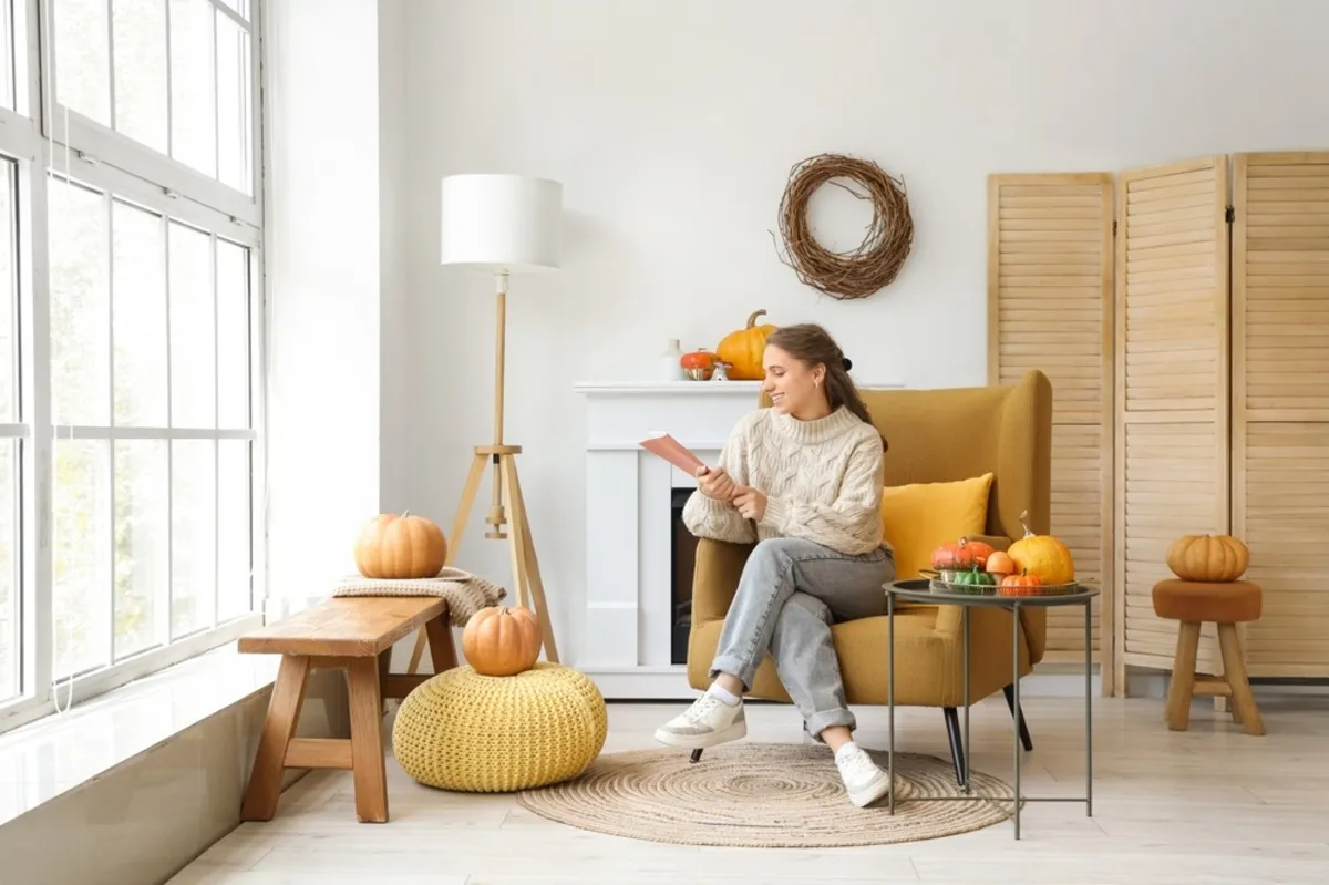 Neutral Outfits Against Autumn-Themed Decor