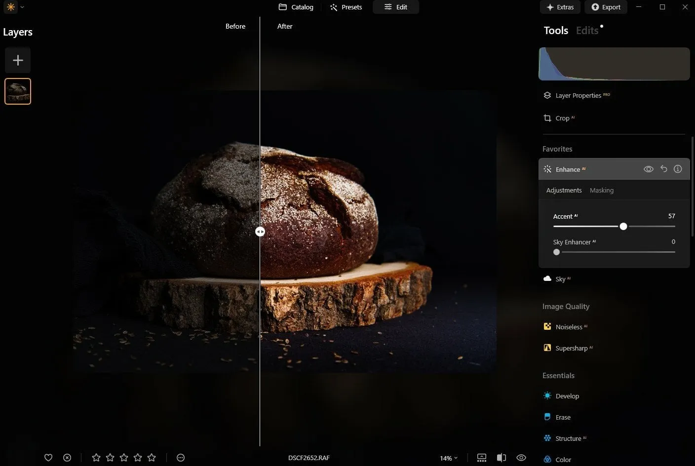 Luminar Neo makes complex editing simpler thanks to AI technologies, which automate the complex parts of the editing process. You can let the software do all the work for you, or take full control of each edit yourself.