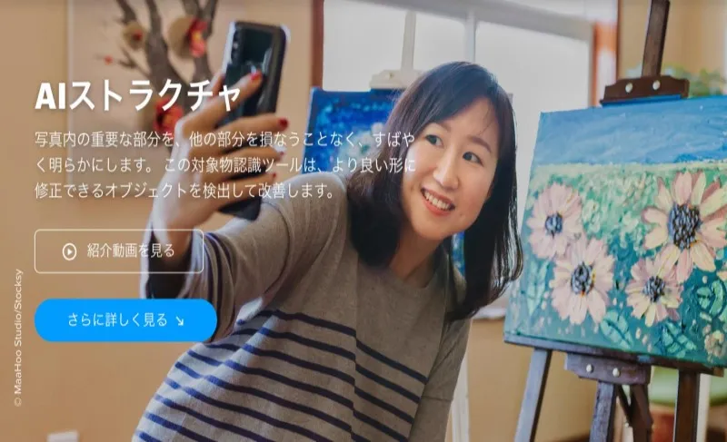 修正が必要な対象物を検出して写真内の重要な部分を、他の部分を損なうことなく、すばやく強調します。