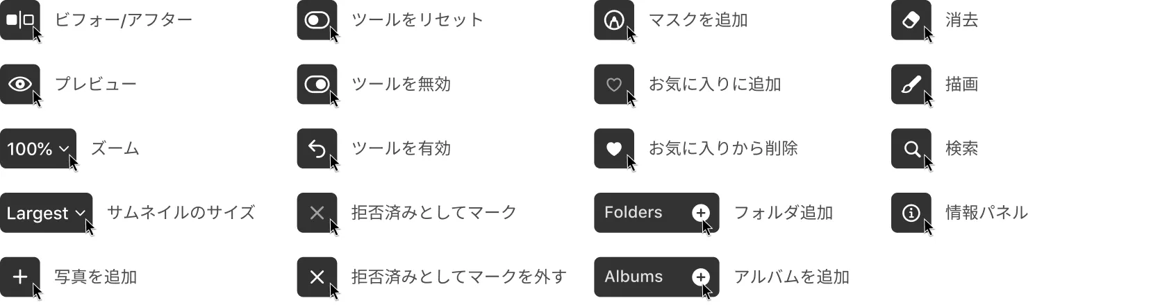 LuminarAIのアイコンにマウスオーバーすると、各機能の機能と、より良い画像の作成方法を確認できます。新たなLuminarAIを探り、必要なすべてのツールを見つけましょう。