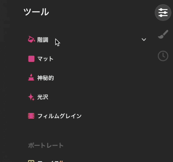 色調ツールに新たにシャドウとハイライトのボタンが追加され、他のLuminarAIツールのデザインとマッチします。