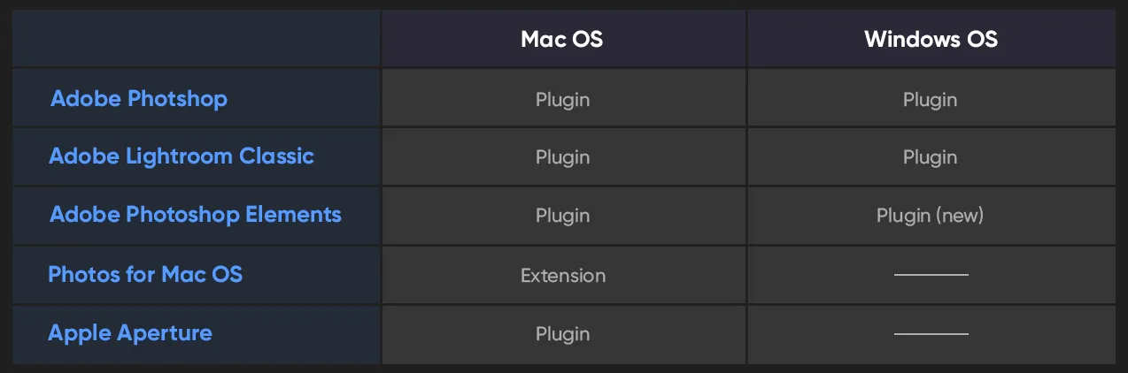 現在のワークフロー-Luminar Flexとライブラリ搭載Luminar 3の両方とも、一般的な写真ソフトにプラグインとして使用できるオプションを提供しています。