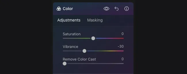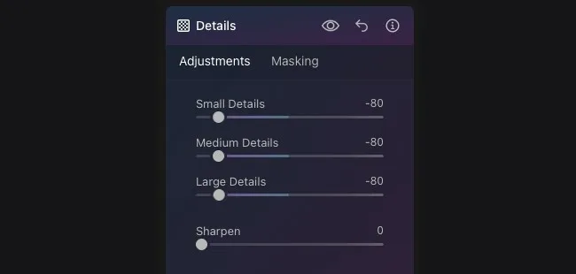 Luminar Neoでは、細部、中間部、全体の3つの範囲をそれぞれ調整することができます。写真を見ながら値を調整し、あなたの好みに調整してみてください。
