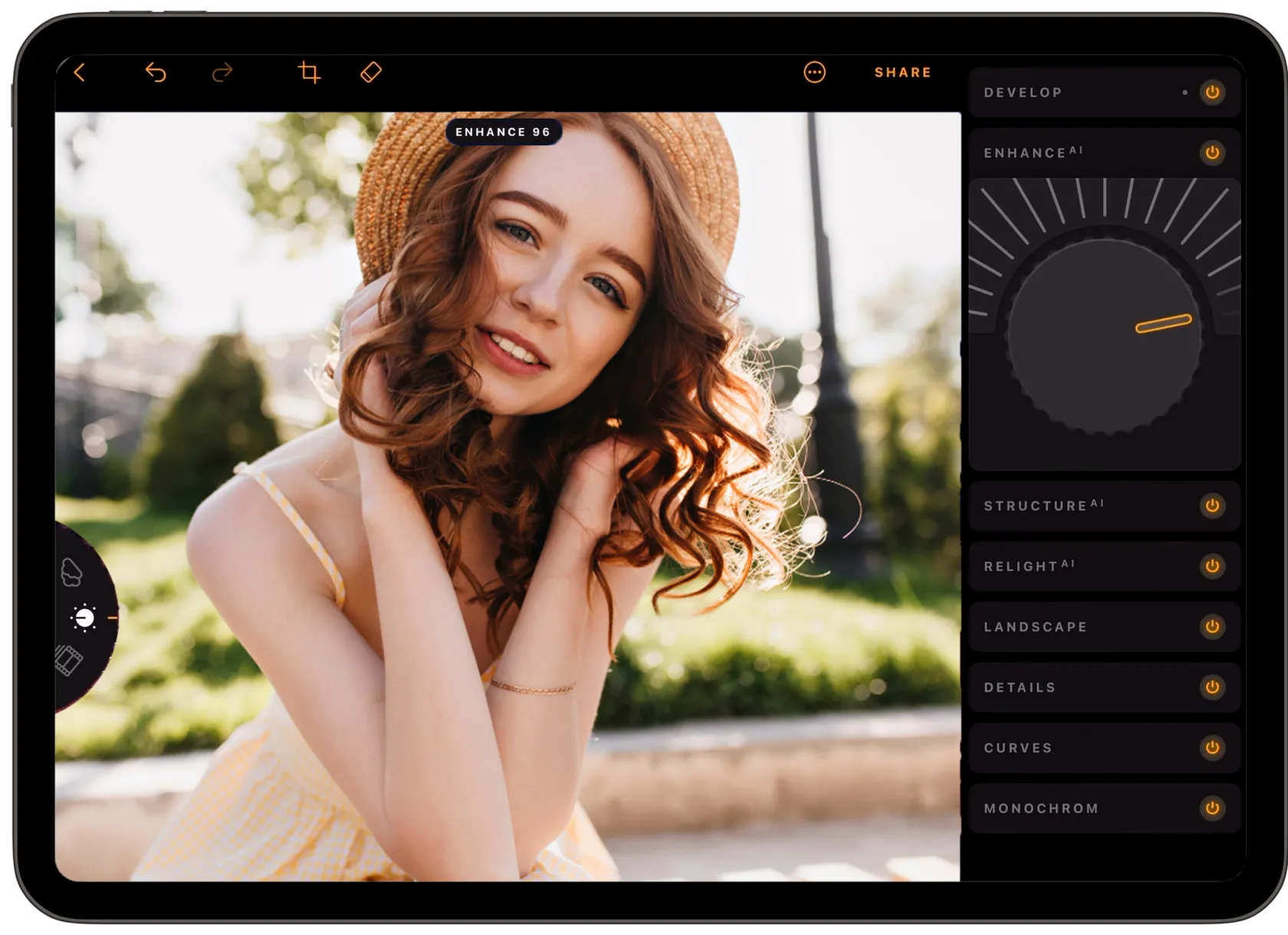 You don’t need a computer to edit photos. Explore the comparison of Mobile vs. Desktop Editor to choose the method that suits you best. Various smartphone apps, such as Adobe Lightroom Mobile, Snapseed, and VSCO, are available. They have paid premium versions and free basic editing tools and filters to enhance your photos on the go. Most mobile applications are also available in tablet versions for greater productivity and ease of editing. You can edit mobile and camera photos on your iPad with Luminar Neo if you’re an Apple user. Luminar for iPad has all the advanced features you need to realize creative ideas. And it will take your mobile photography to a new level.