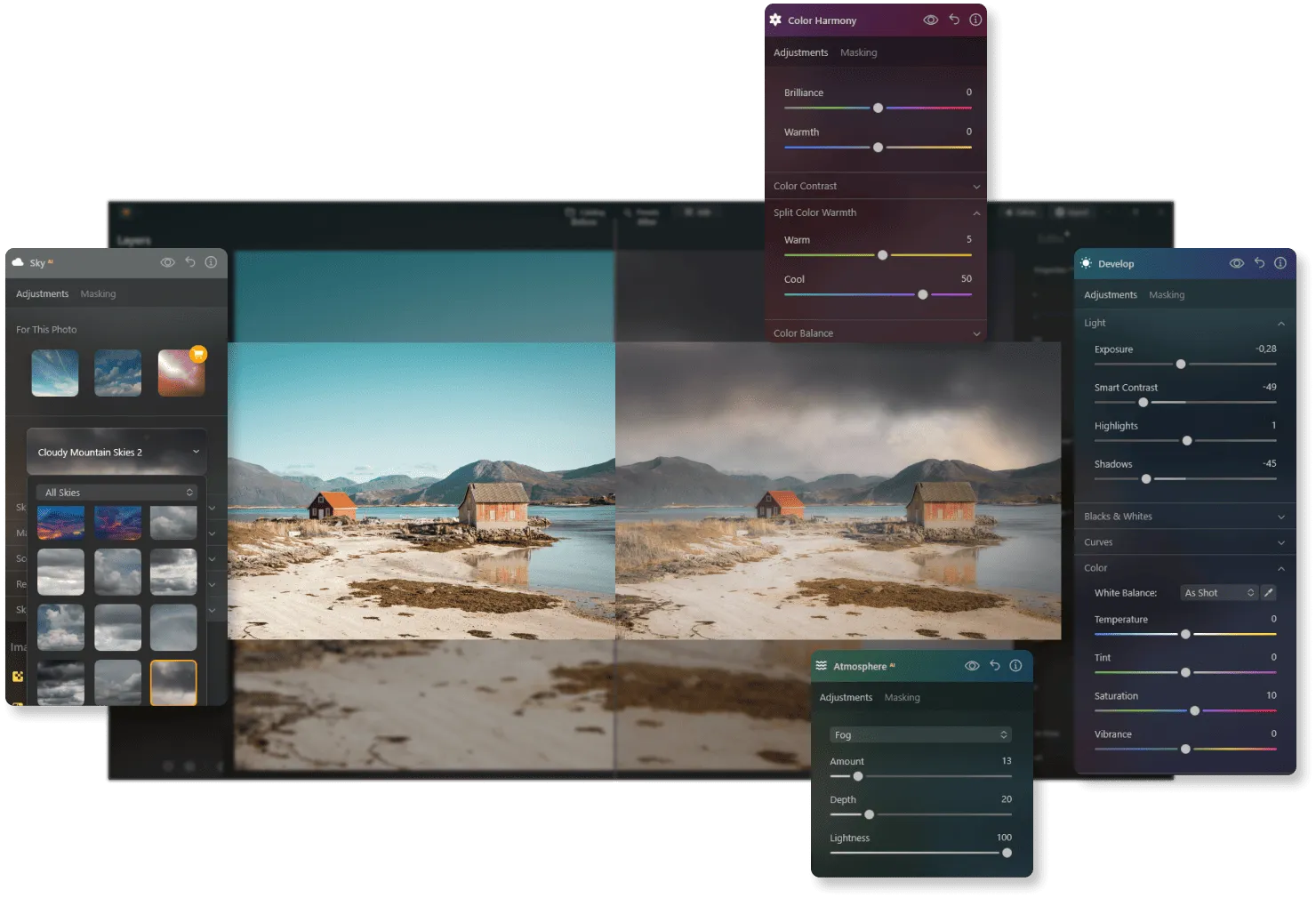 하지만 Luminar Neo는 인물 사진뿐만 아니라 풍경 사진 편집에도 탁월합니다. 이 소프트웨어에는 색상을 조정하고, 하늘을 바꾸고, 안개와 같은 분위기 효과를 추가할 수 있는 고급 AI 도구가 탑재되어 있어 풍경 사진을 좋은 사진에서 숨 막힐 듯 아름다운 사진으로 바꿔줍니다. 최고의 카메라 브랜드의 이미지로 작업하든, 창의적인 비전을 실현하고 싶든, Luminar Neo는 편집 과정을 간소화하고 사진을 아름답게 향상시킵니다!