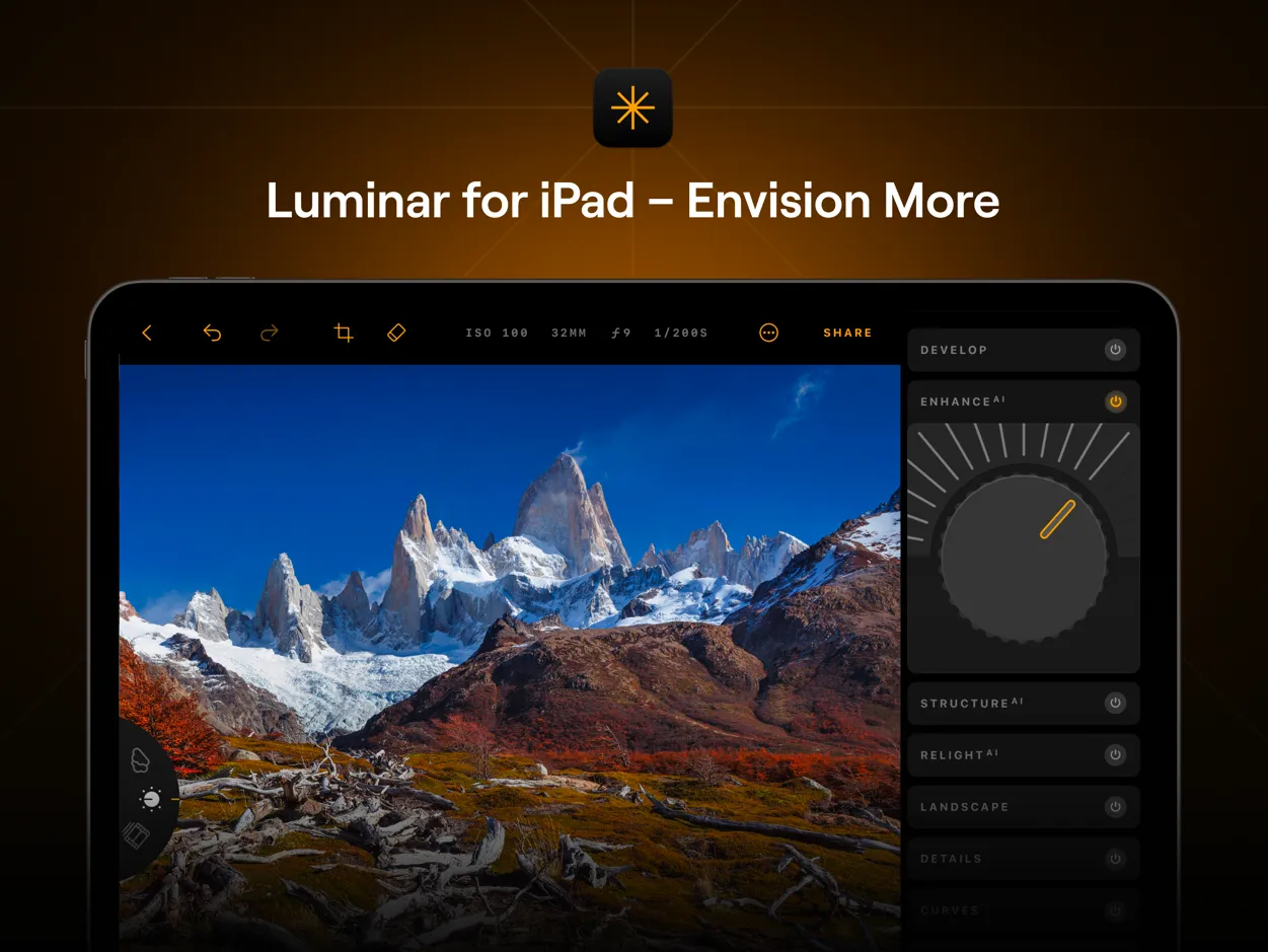 종합적인 편집 도구인 iPad용 Luminar에는 정밀한 색상 및 톤 조정, 디테일 향상, 완벽한 구도를 위한 자르기, 풍경 및 흑백 사진을 위한 특정 도구가 포함되어 있습니다. 또한 직접 RAW 파일 편집을 지원하여 최고의 이미지 품질을 보장하고, 다양한 사진 필터를 제공하여 나만의 개성을 표현할 수 있습니다.