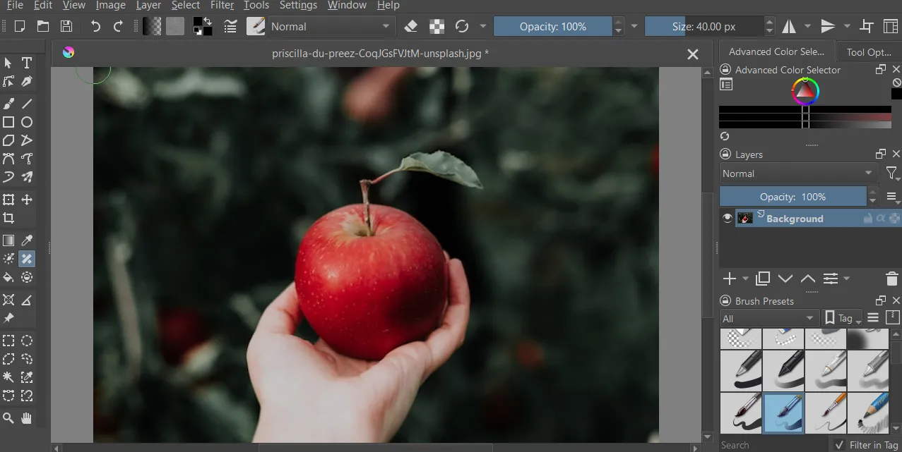 Krita is a great image editor that is very useful for preparing images for our publications. It is easy to use, and really intuitive, and its features and tools offer all the features we could ever need.