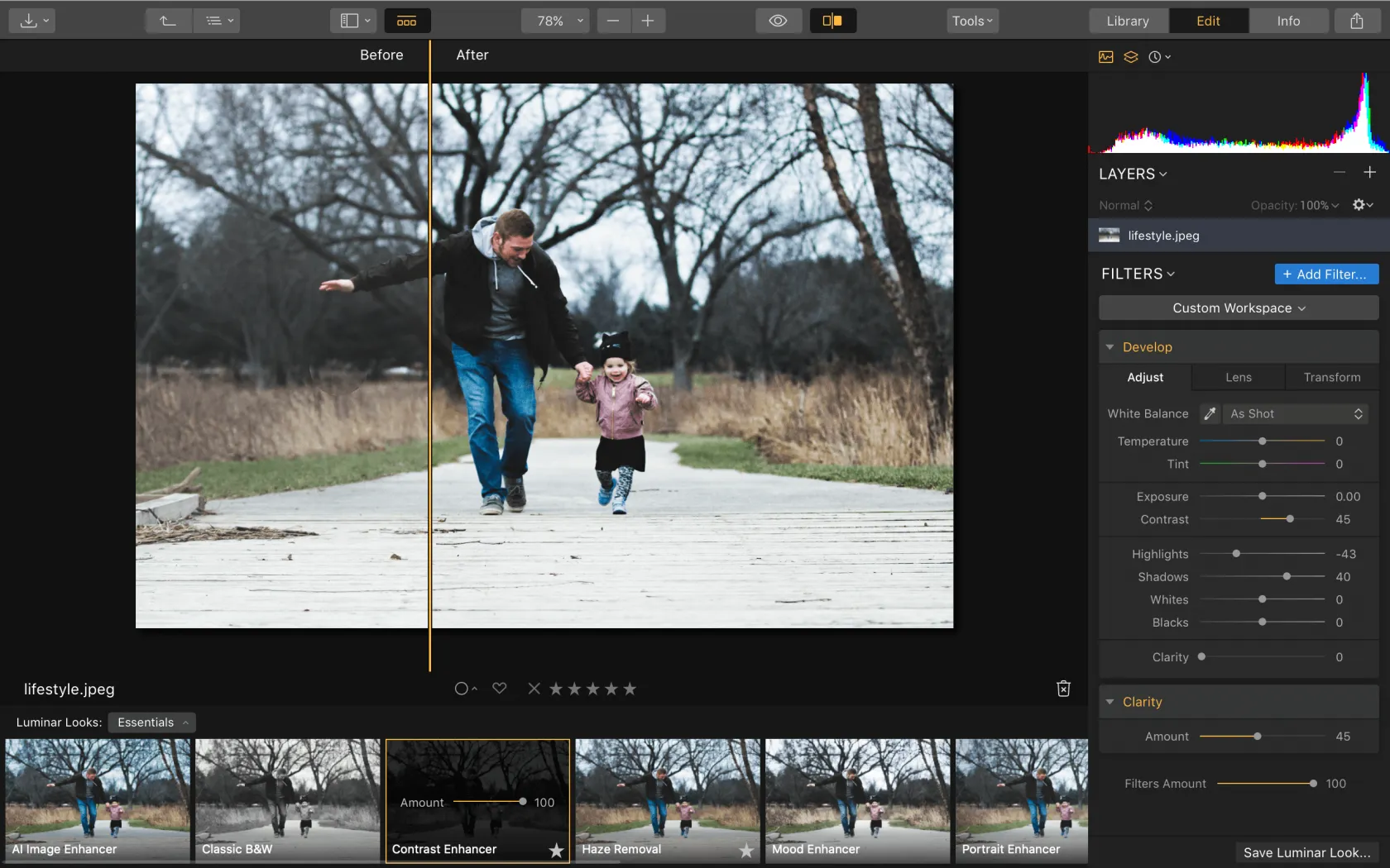 In lifestyle photography, good image editing software is your best friend. You need clean, bright, and sharp images that are ready to go into a family album or into the world of advertising. Family lifestyle portraits are sometimes the best business card for you. Moreover, you need a subtle editor because images have to be realistic.