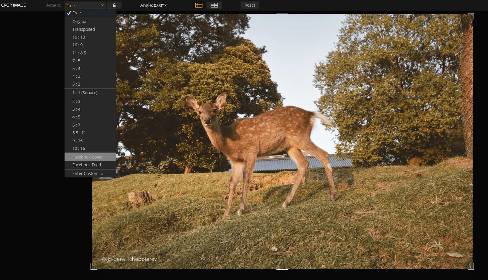 - In the Crop menu, choose Facebook cover photo