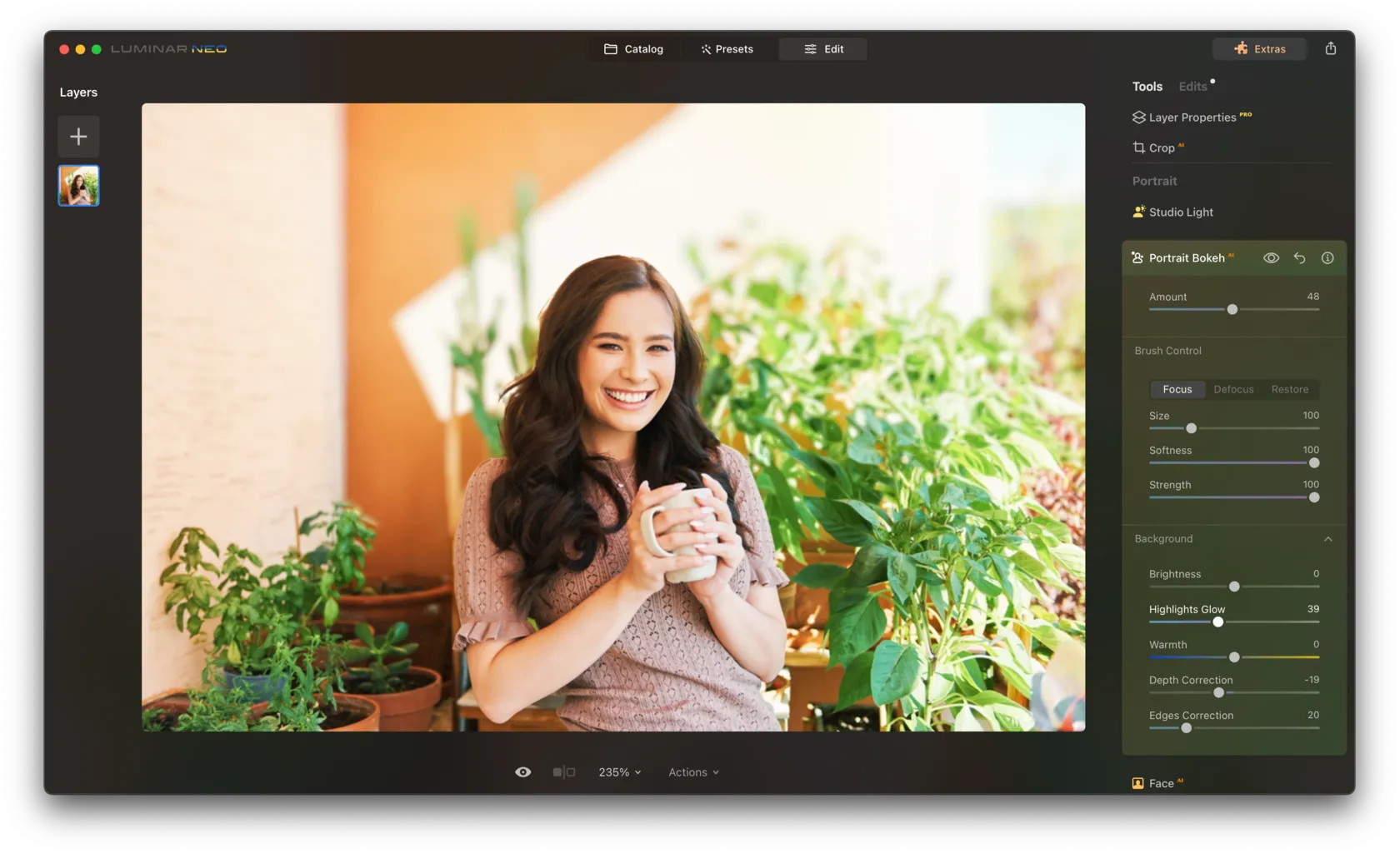 Open your portrait image in Luminar NEO.
