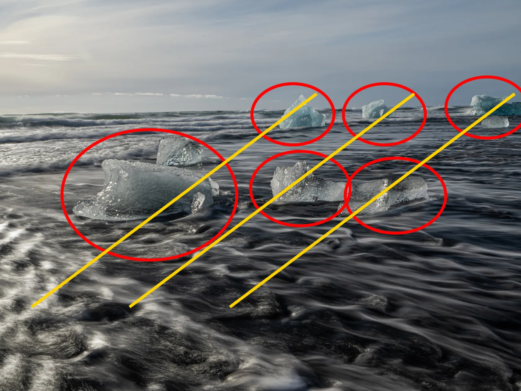 Scale refers to the size relationship between different elements within an image and how those elements relate to their environment. Including elements that provide a size reference helps convey the magnitude and grandeur of the objects in the picture.