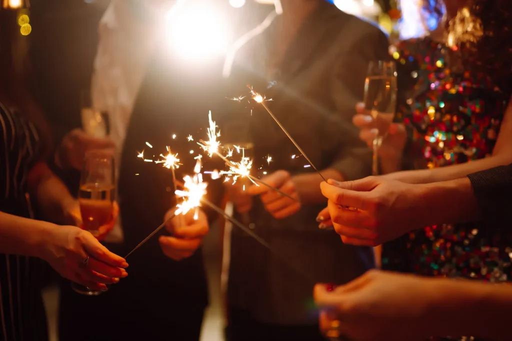 New Year’s Eve is all about the dazzling lights, and sparklers add that extra magical touch. Snap photos of friends and family writing messages with sparklers at night, creating a beautiful and memorable effect.