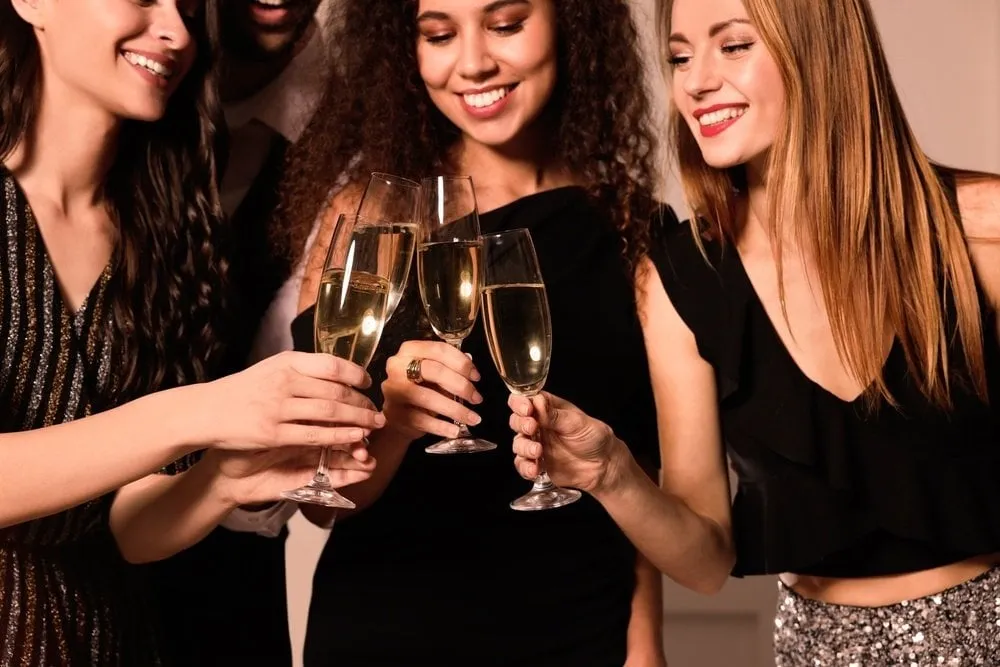 Celebrate with a glass of bubbly! Champagne flutes and bottles can be both props and sources of enjoyment during your photoshoot. You can also include noisemakers and party blowers to add an extra dose of merriment.