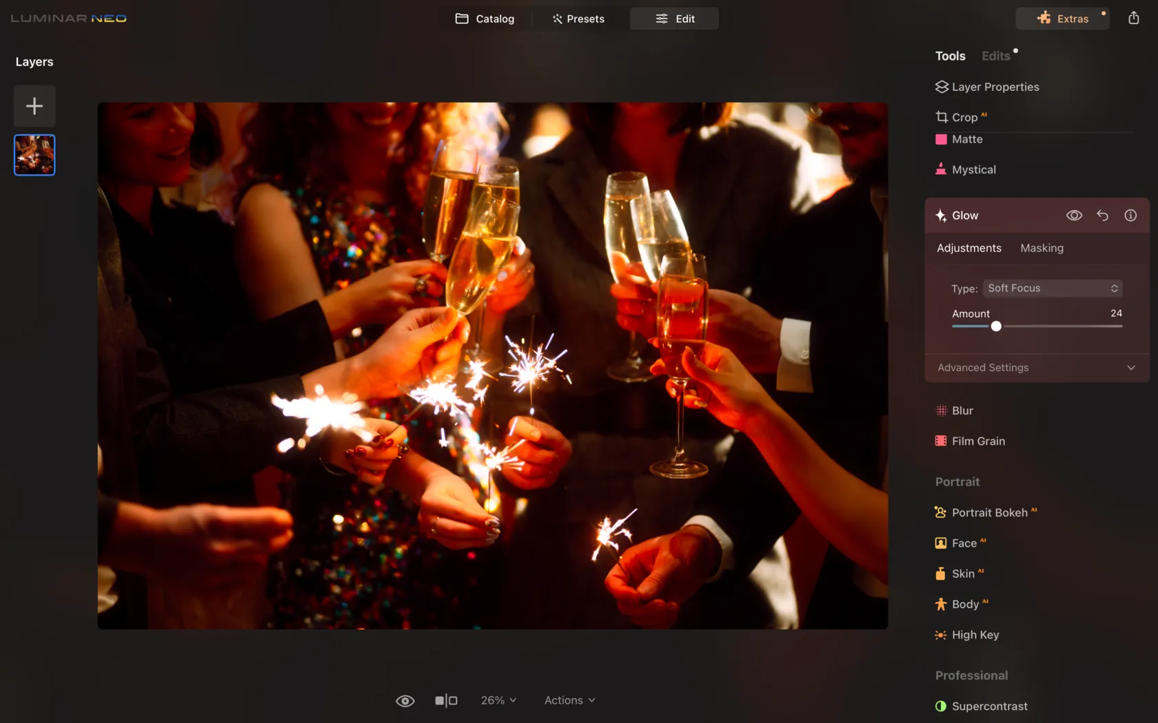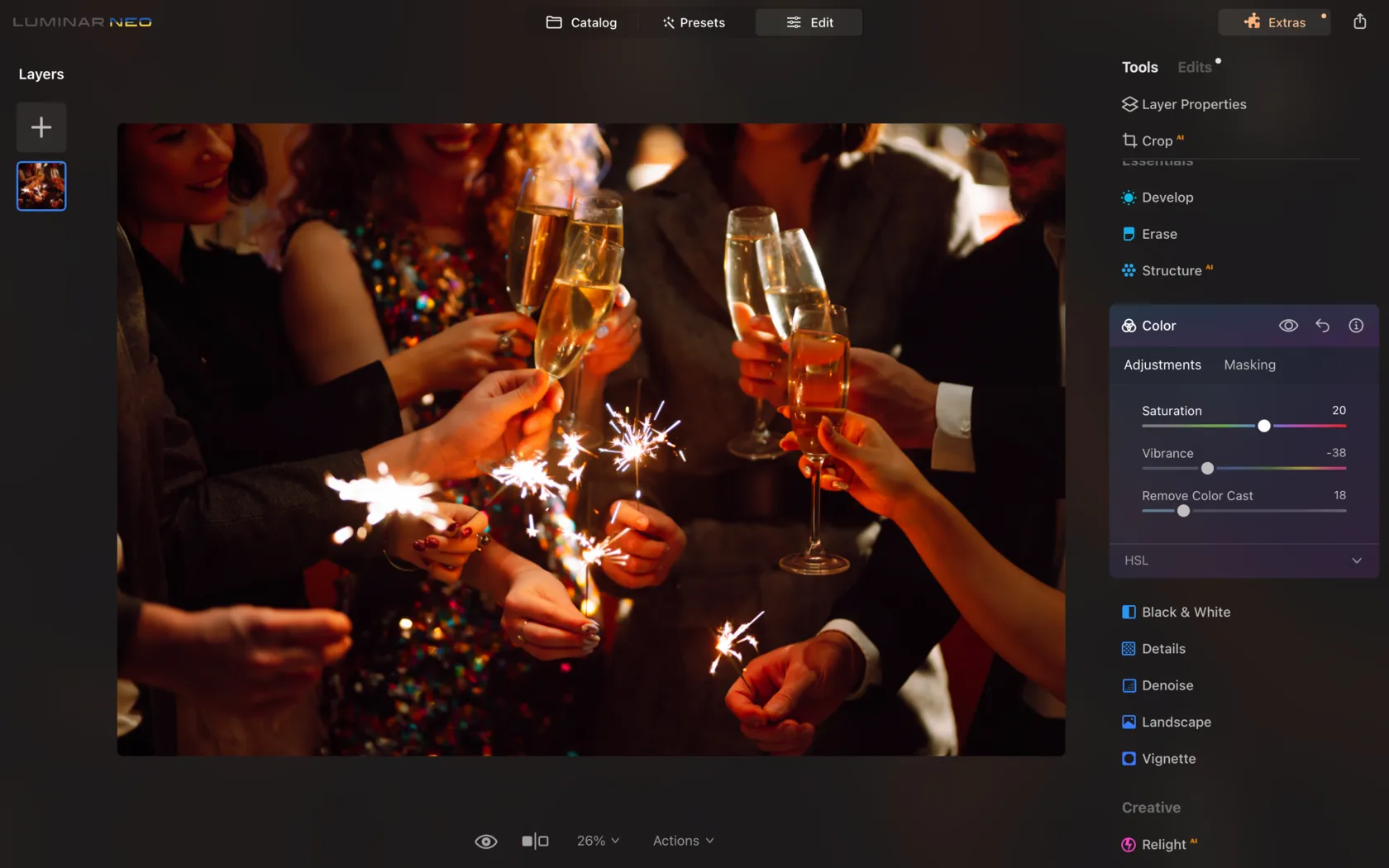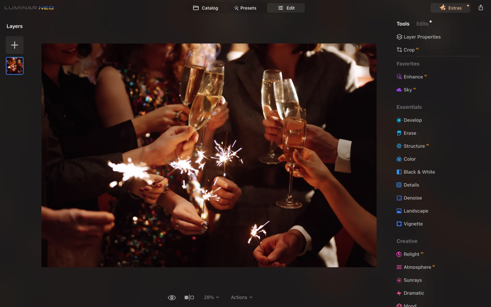 And for the finishing touch, Luminar Neo is the magic wand to enhance your New Year’s photos. With its wide array of editing tools, you can add that professional touch, create the desired mood, and make your images stand out.