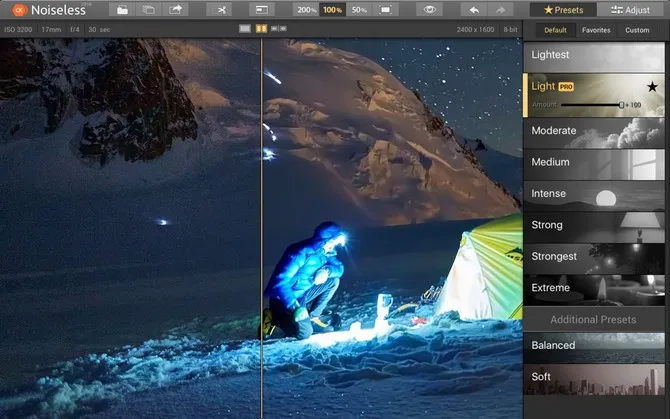 Noiseless is easy to use, in fact it’ll choose the best preset to fix your noisy shots.