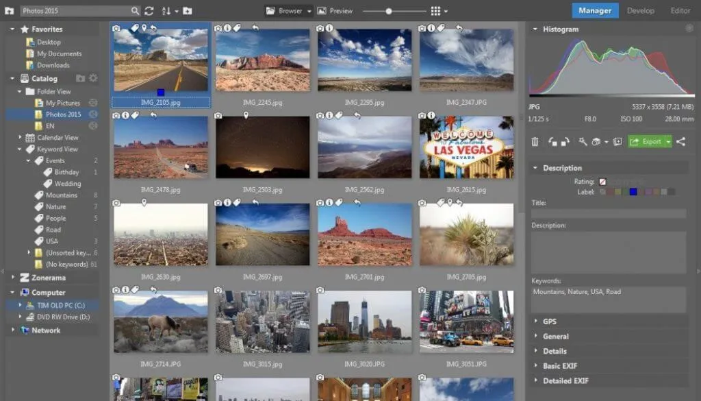 With Zoner Photo Studio X, you’ll have access to tools for retouching, video editing, cataloging, presenting, and more. One of the best photo management software tools out there, Zoner has a free one-month trial period. It is available on Windows.