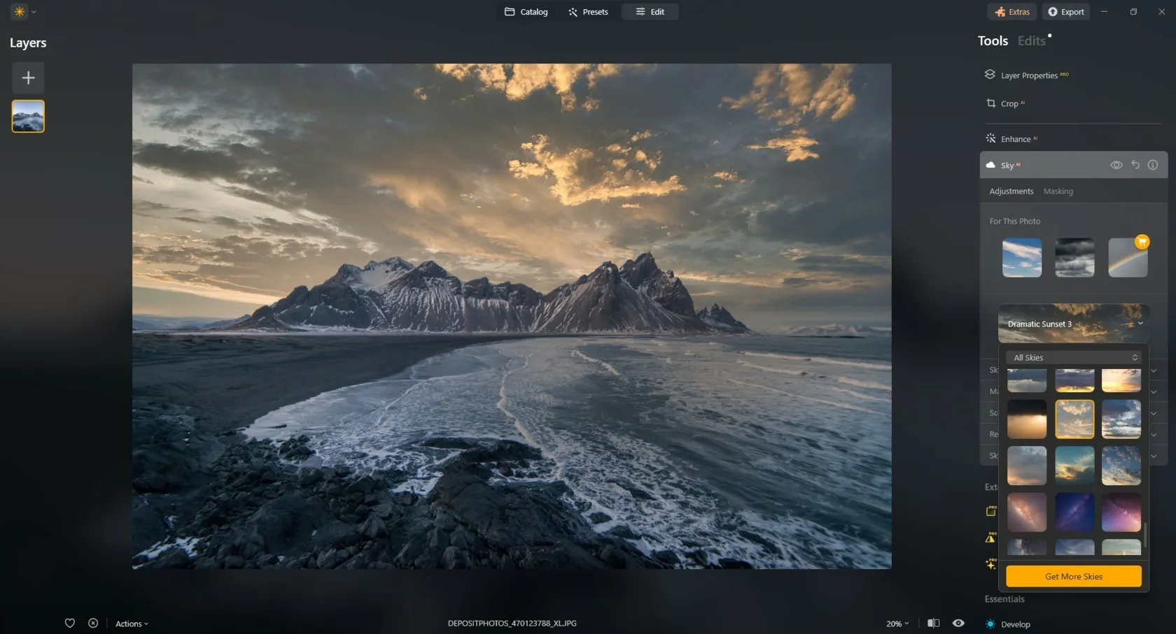 - Luminar Neo doesn’t require any manual selections thanks to its time-saving AI tools. Nonetheless, you can change layers if you desire.