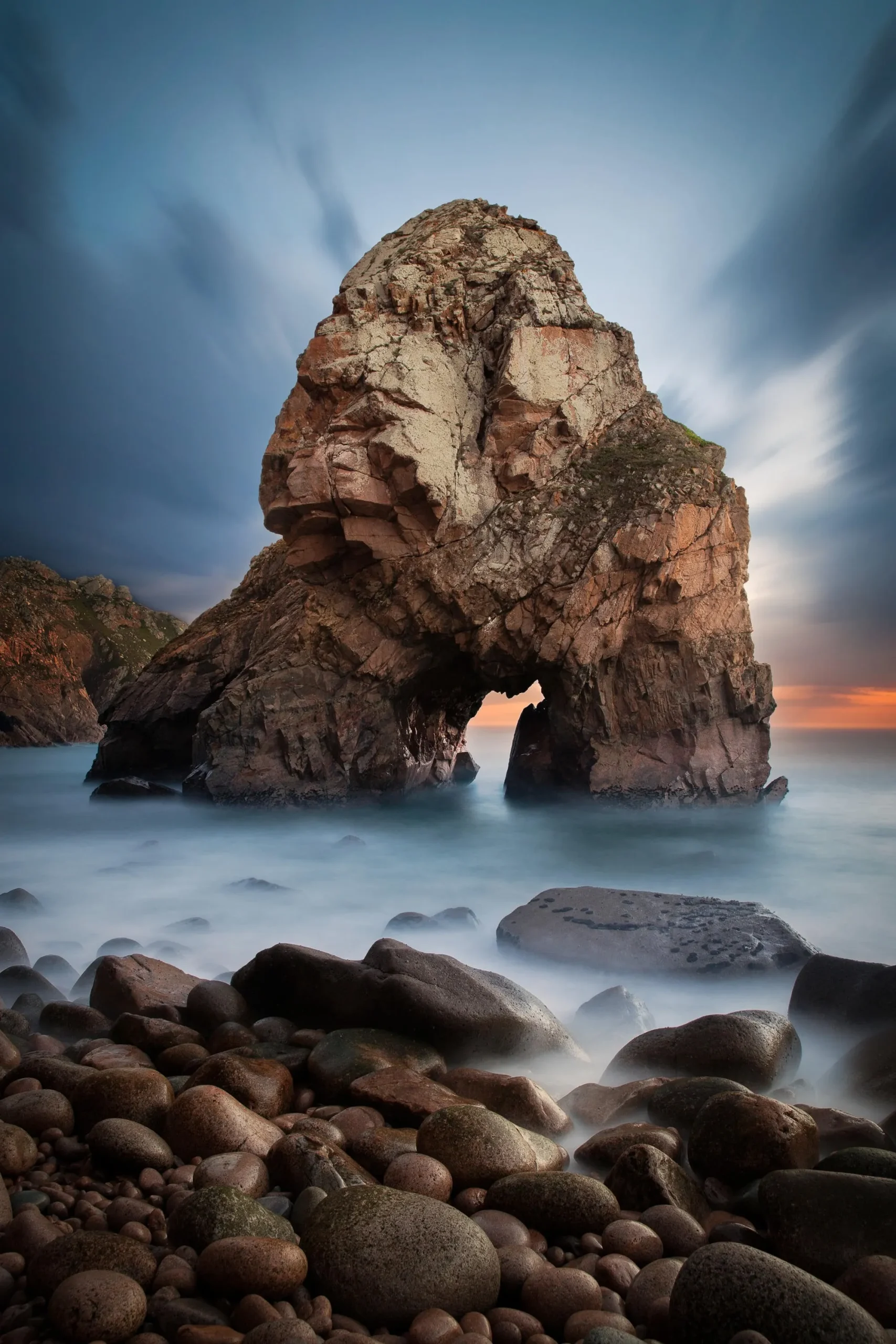 “Entitled “Somnium” (from the Latin meaning dream), this little gift is indeed an amazing piece of art from mother nature! Situated on the westernmost point of continental Europe (Cabo da Roca / Cape Roca in Sintra), the “Malhada do Louriçal” is located at the end of a very tricky trail where we have to climb down with the help from a rope at the very end. The climb is definitely worth it. The cliff somehow reminds us of a human figure with a small portal in the middle of it. Around here, it’s just you and nature, no mobile network, no crowd, just the meditative sound of the waves crashing down against the rocks that make a peculiar sound when it rolls back out. Behind us, there is a small waterfall that sometimes runs with more water when it rains more abundantly. On the right, we also have 3 gorgeous rocks that rise from the sea and complete the wonderful scene from this place. The cherry on the cake are the magnificent sunsets that are common in this area.” – Hugo Graça, Naturephoto contest winner