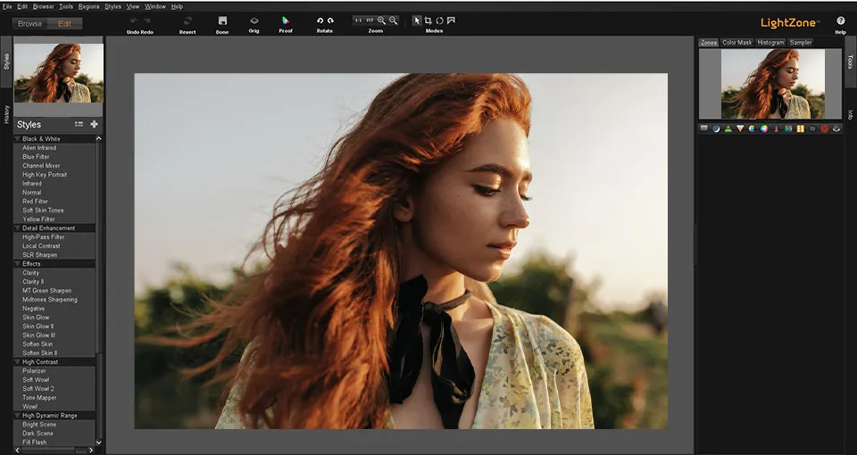 This software shines bright as a prominent RawTherapee alternative, especially for users looking for an auto image editor based on artificial intelligence. Suppose you must replace the sky to eliminate skin defects, remove unnecessary objects from your pictures, crop your images, or experiment with contrast and colors. In that case, the AI-driven tools of this software will detect the picture areas that require enhancement and do the job for you within seconds.