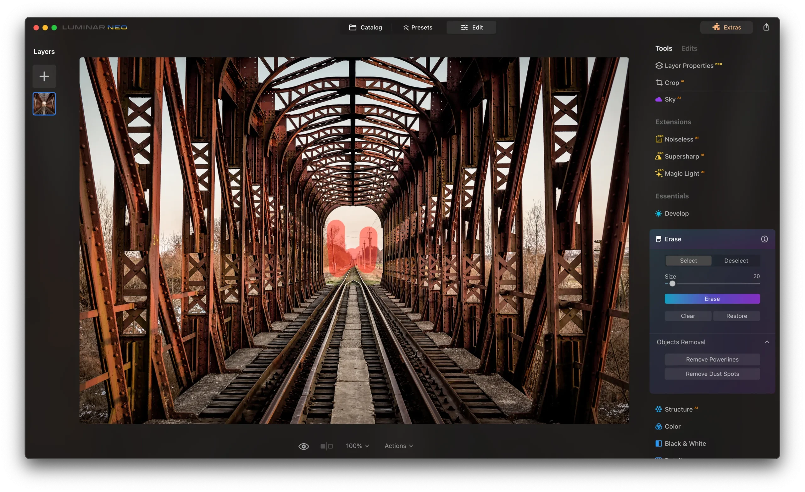 For example, you could capture a line of parked cars, a row of apples on a supermarket shelf, or even a group of people dressed in the same color. Sometimes an unwanted object might disrupt your perfect pattern. In such situations, Luminar Neo’s ability to erase objects in a photo comes in extremely handy, helping you maintain the desired repetition.