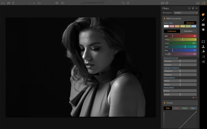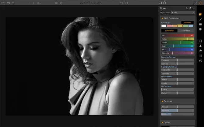 After adding the B&W workspace under the Filters section, try these three steps to help create richer detail, better contrast, and feeling in your portraits.