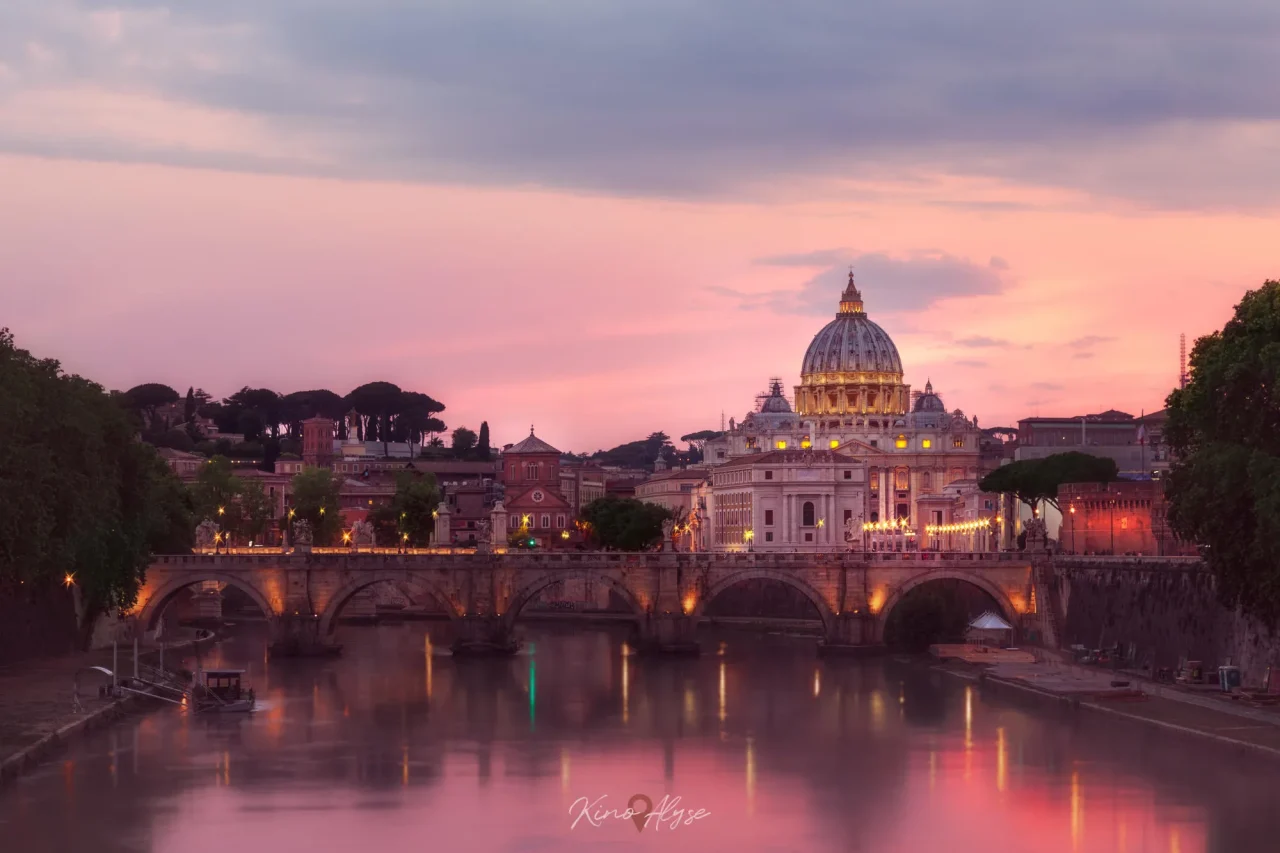 “Sunset on the Bridge of Angels and St. Peter’s Dome, which overlook the Tiber River…” – Kino Alyse, photographer