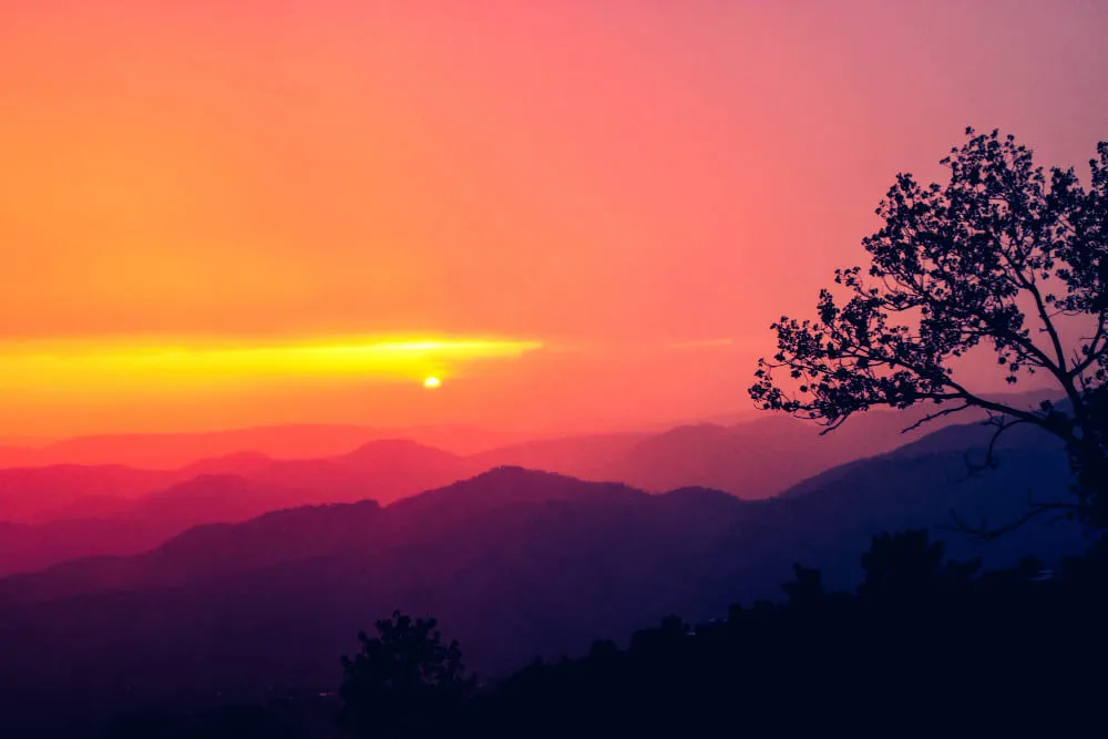 A sunset doesn’t always have to feature the sun itself. Observe how the sunset light colors the surroundings — maybe it casts a golden glow on a valley or pink hues on mountain peaks. Capturing these effects can sometimes make for even more compelling images than the sunset alone.