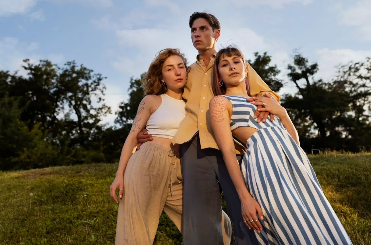 For a group of three, position one person in the middle and the other two slightly behind or beside them. This creates a natural triangle shape, which feels balanced and draws attention to the central subject.