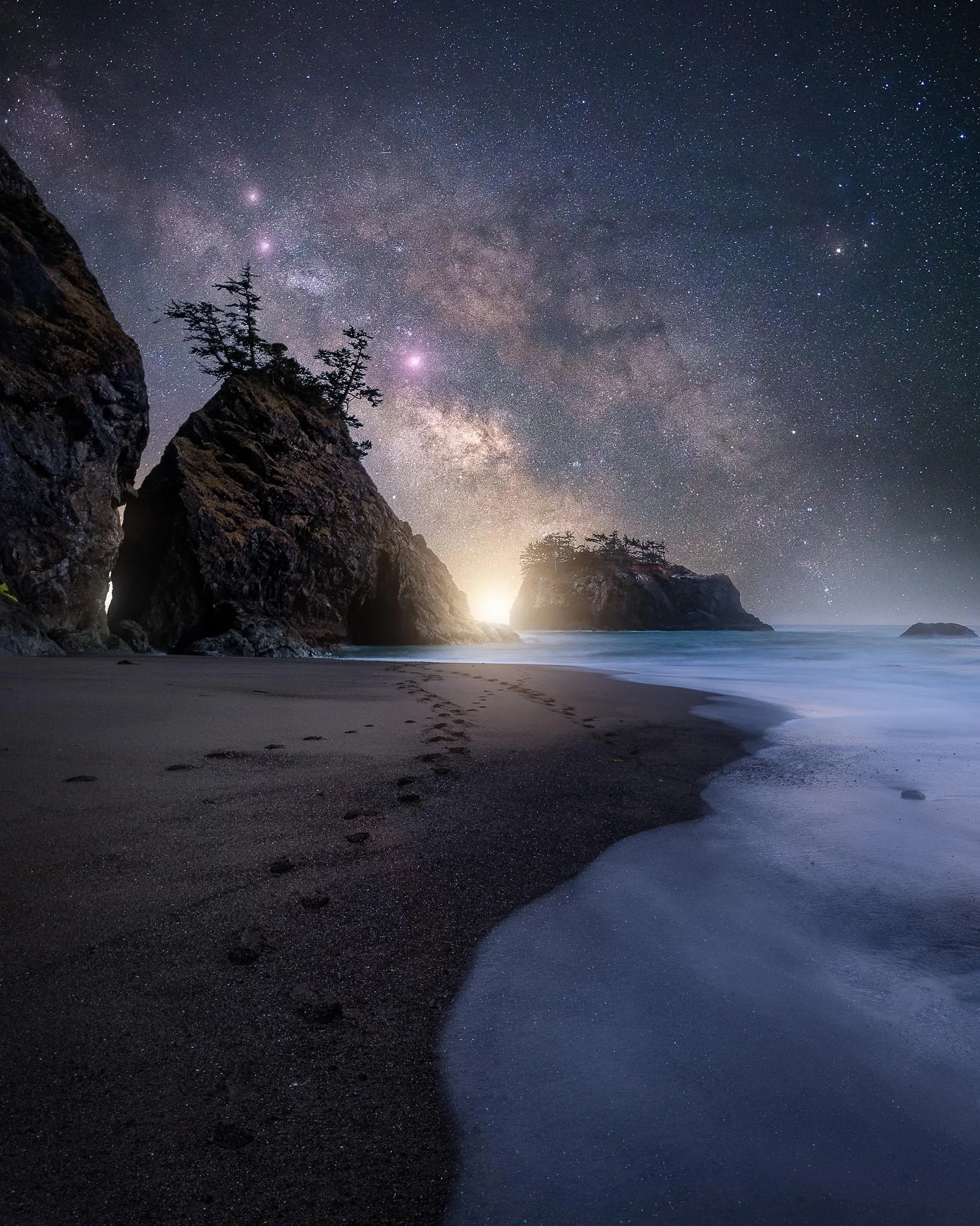 It’s important to go as far away from light pollution as possible, since any excess light will minimize the number of stars you can see in your photographs. Typically, the best night light for Milky Way photography is far from a city. If you’re lucky enough to live out in the country, congratulate yourself on picking such a spectacular location.
