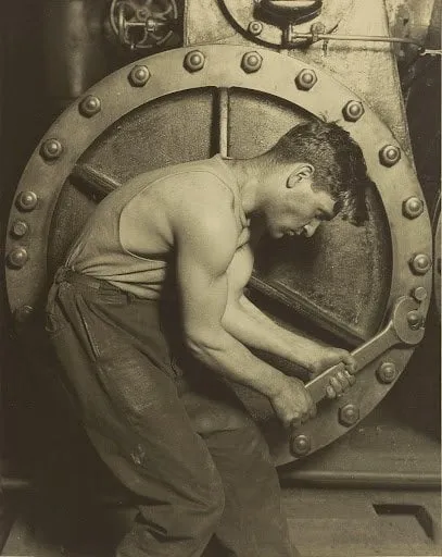 Power house mechanic working on the steam pump by Lewis Hine, 1920
