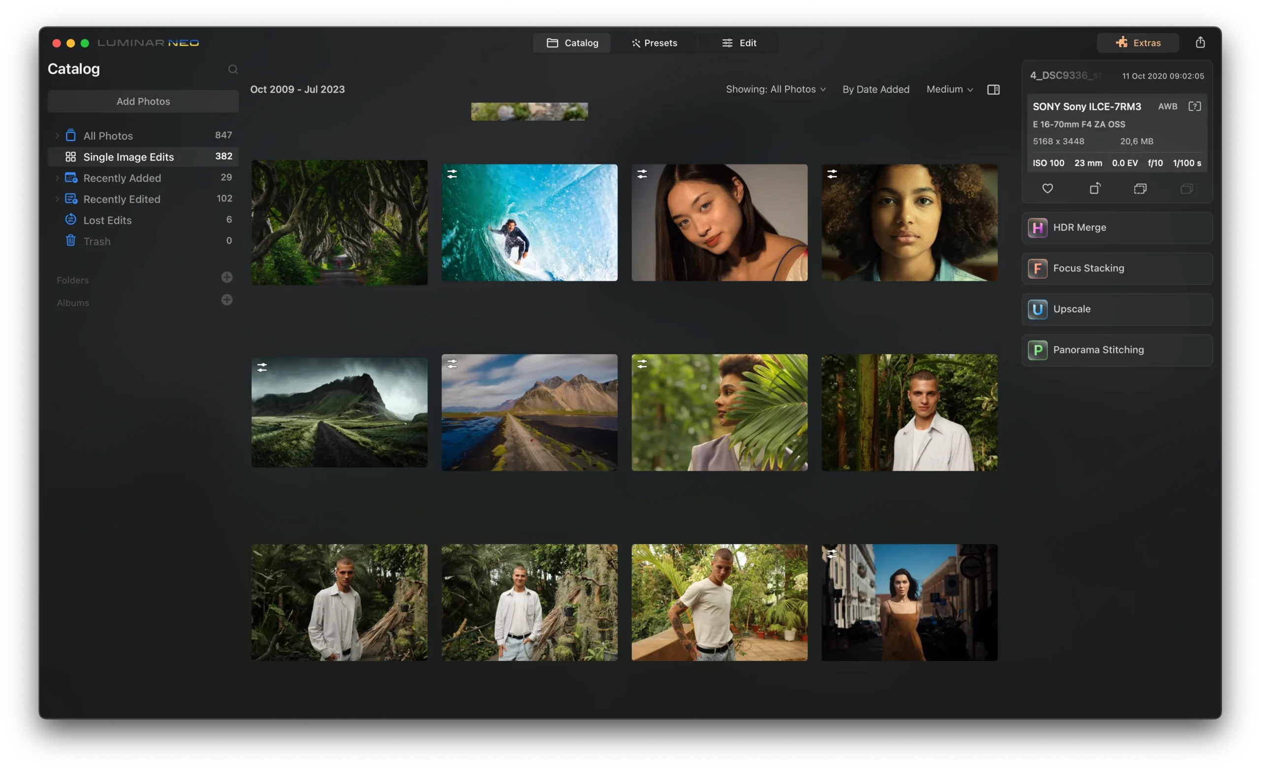 Luminar Neo займає провідні позиції у сфері автоматичного редагування фото, пропонуючи блискуче поєднання простоти й потужності. Як найкращий автоматичний фоторедактор 2026 року, він вирізняється завдяки функціям на базі ШІ, які розширюють ваші творчі можливості та оптимізують процес редагування. Незалежно від того, чи потрібно зменшити цифровий шум, замінити тьмяне небо або видалити небажані елементи, Luminar Neo може виконувати автоматичне редагування фото з мінімальними зусиллями користувача.