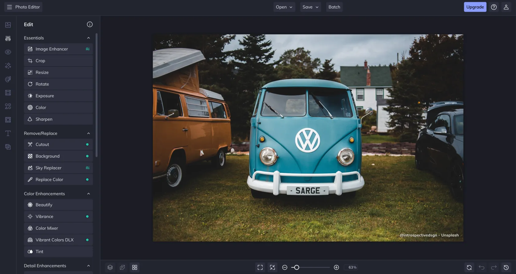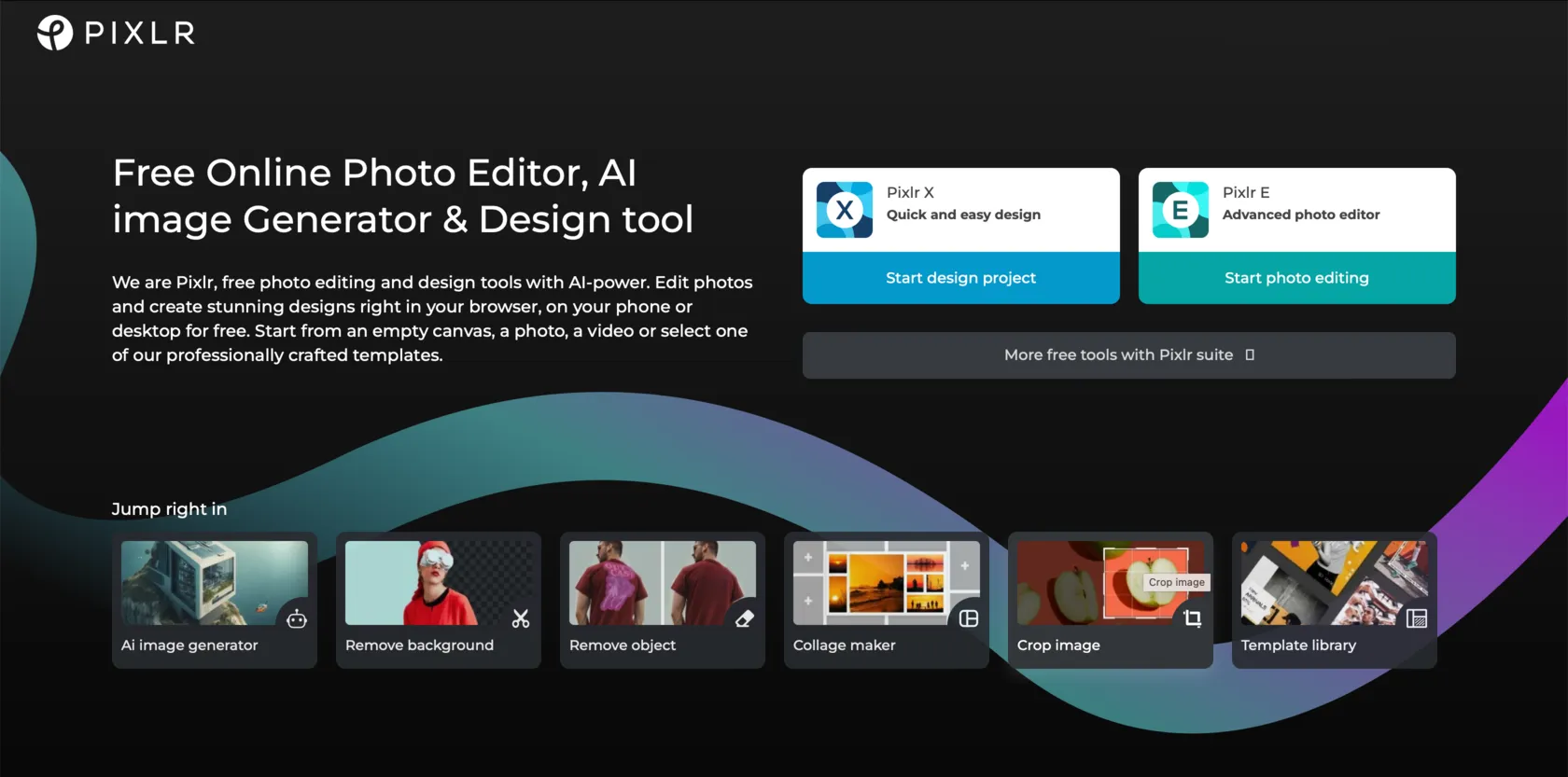 Pixlr — чудовий вибір для тих, хто шукає веб-редактор автоматичного редагування фото у 2026 році. Оснащений багатьма функціями, Pixlr пропонує потужну платформу для редагування без потреби встановлення програми чи застосунку. Його інтуїтивний інтерфейс у поєднанні з професійними інструментами робить його зручним як для новачків, так і для досвідчених фотографів.
