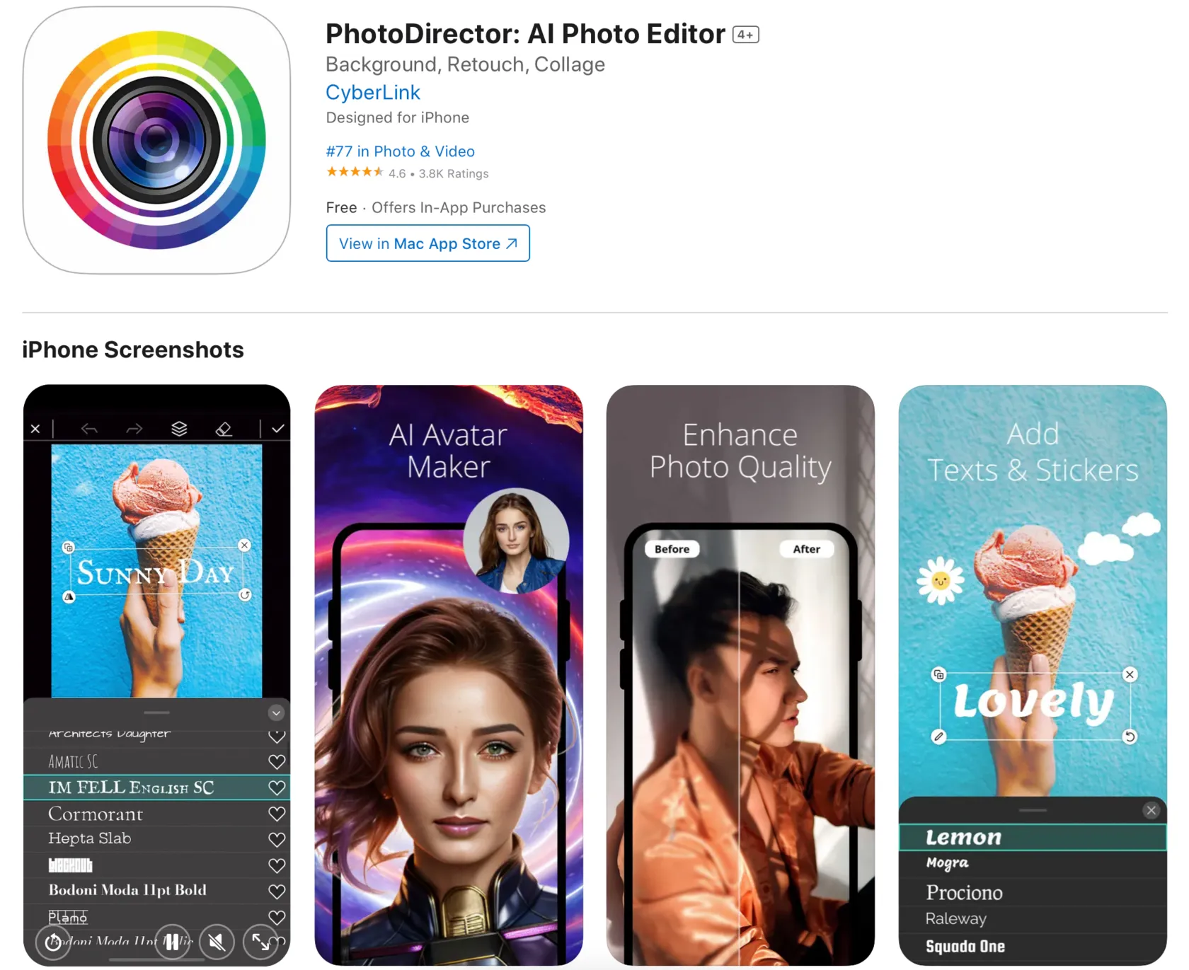 PhotoDirector — це багатофункціональний застосунок, що поєднує редагування фото, графічний дизайн і навіть відеоредагування в одній платформі.