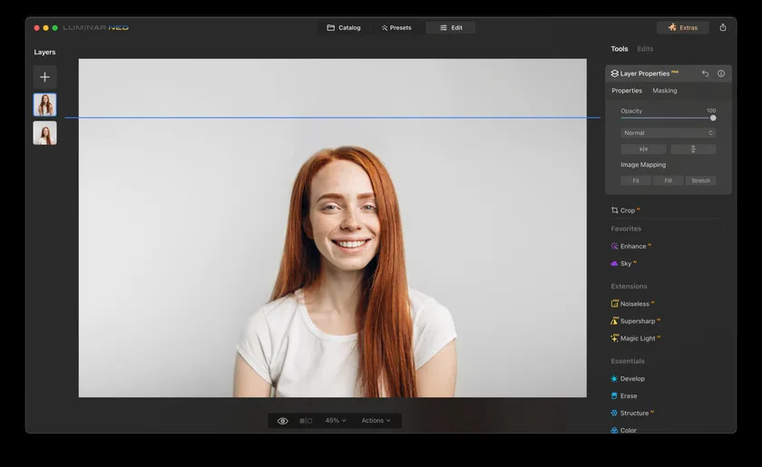 Виправлення заплющених очей у Luminar Neo