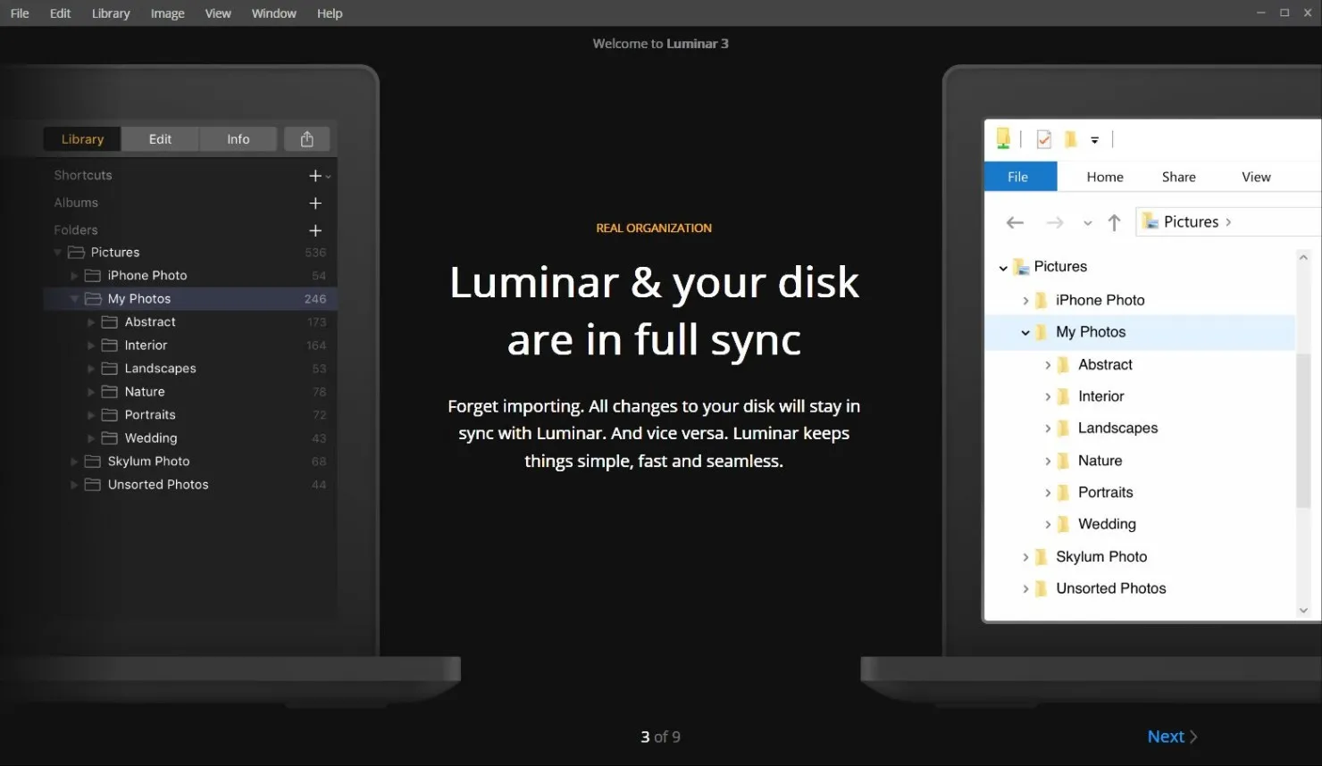 A Luminar Library stays in sync with your folders