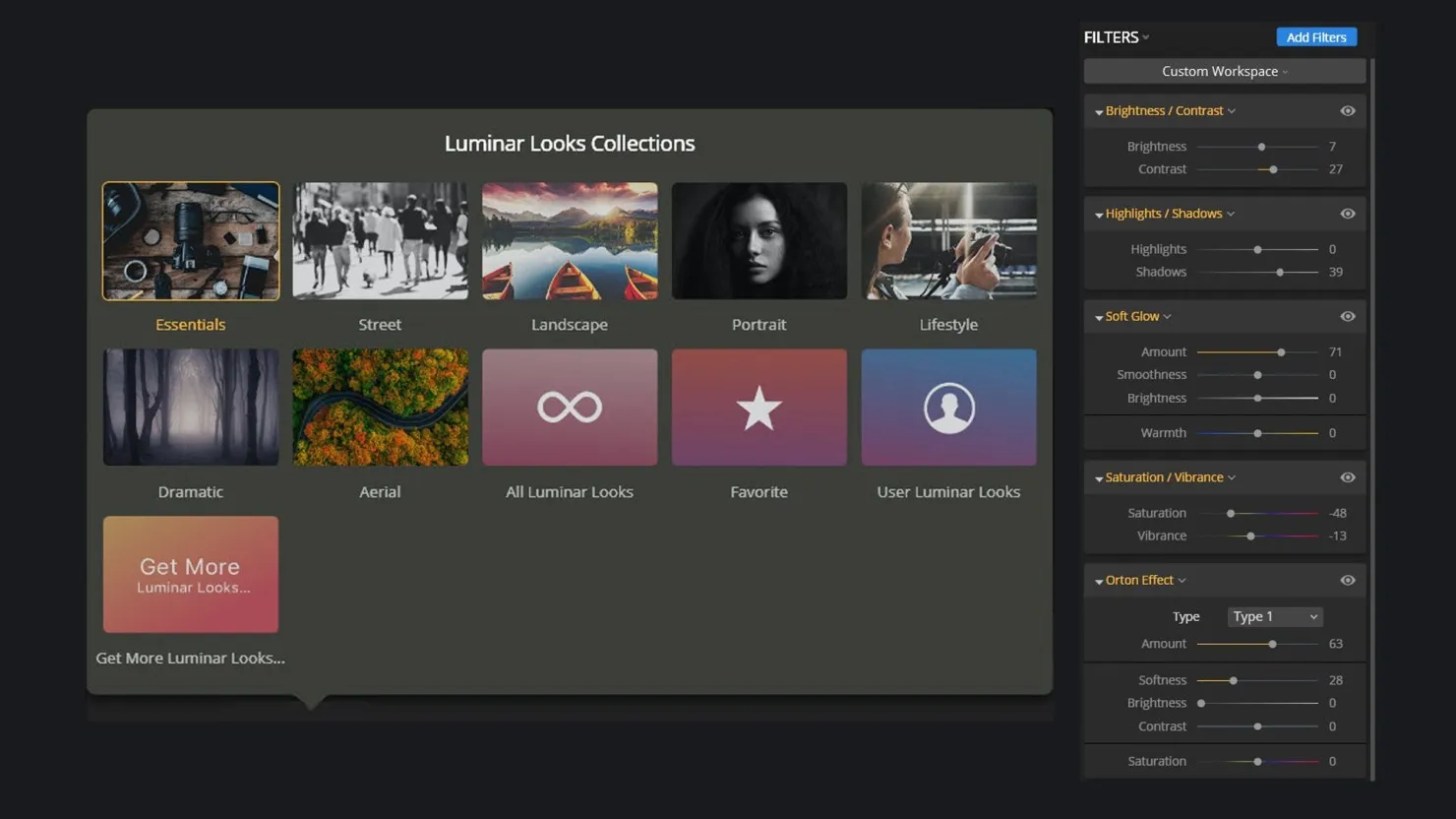 Examine the settings and how the combinations of filters added to the overall style to create the Luminar Look. Here’s the best part: You can make changes to the settings or add additional filters, then save the new Luminar Look as your own!