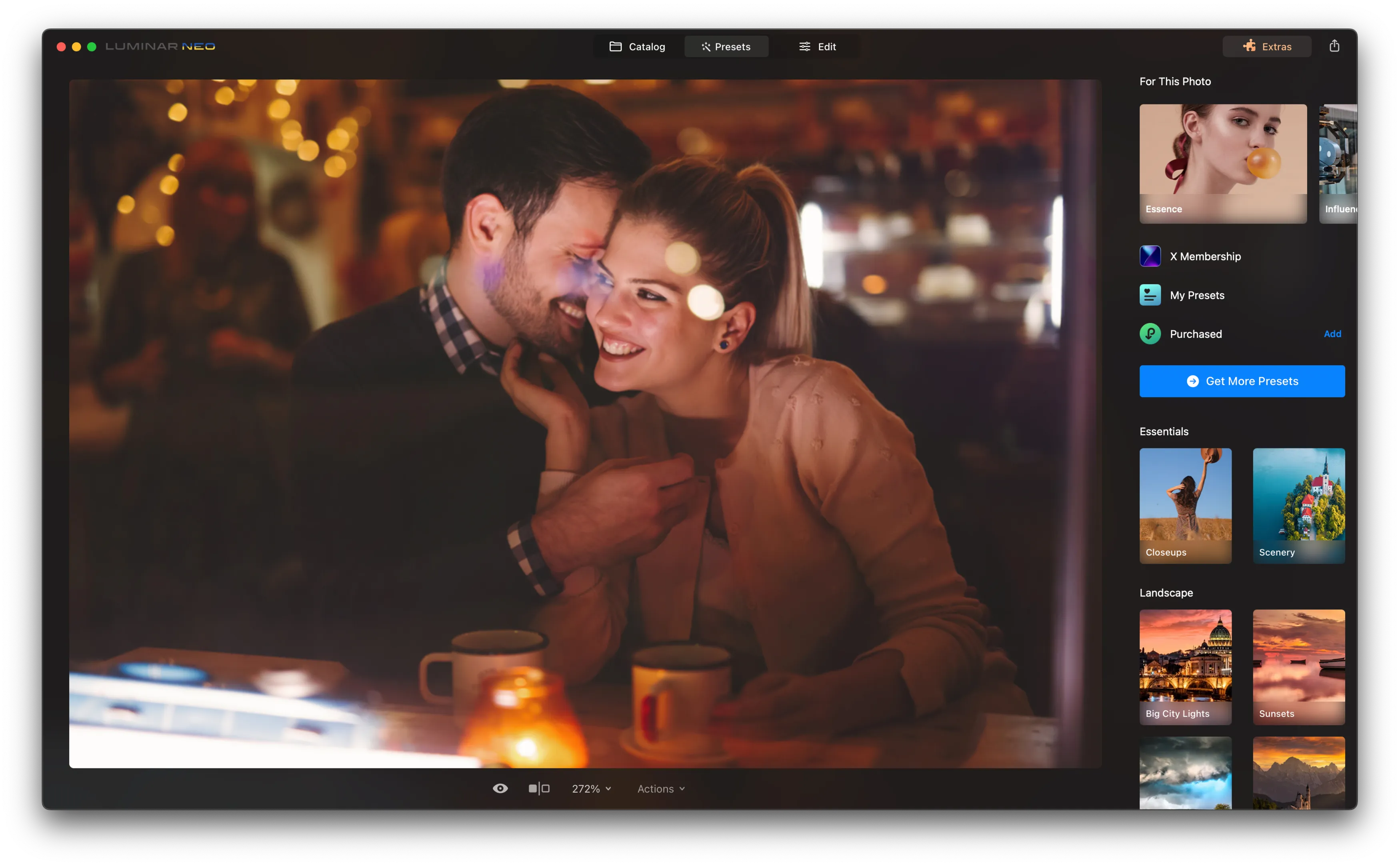 But what truly sets Luminar Neo apart in Valentine’s Day photography is its ability to handle backgrounds easily. Whether you aim to isolate your subjects for a cleaner look or want to add a romantic bokeh effect, the portrait background remover tool simplifies these tasks. It’s perfect for focusing on the couple or altering the background to match the romantic mood of the day.