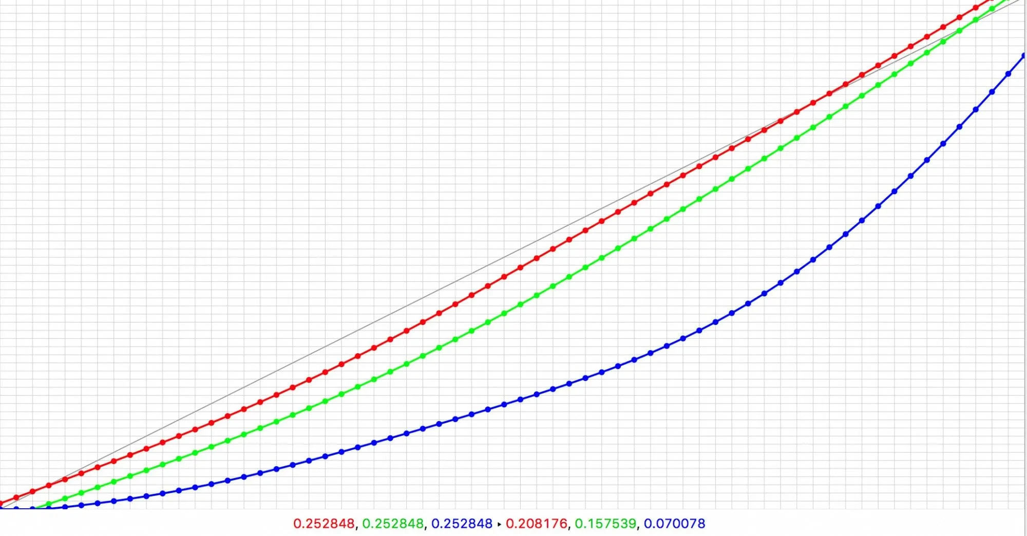 You can see that the colors shift relatively dramatically as do tonal values. Translating the LUT into a Curve looks a bit like this.