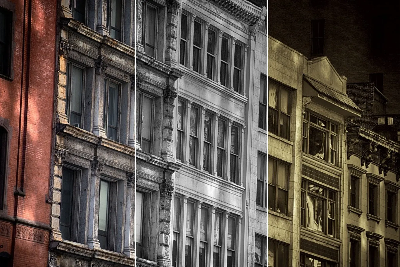 Now, let’s look at the LUT when combined with a black and white adjustment. In this case I converted the image to black and white, and then applied the LUT. The split screen below makes it easy to see the three states.