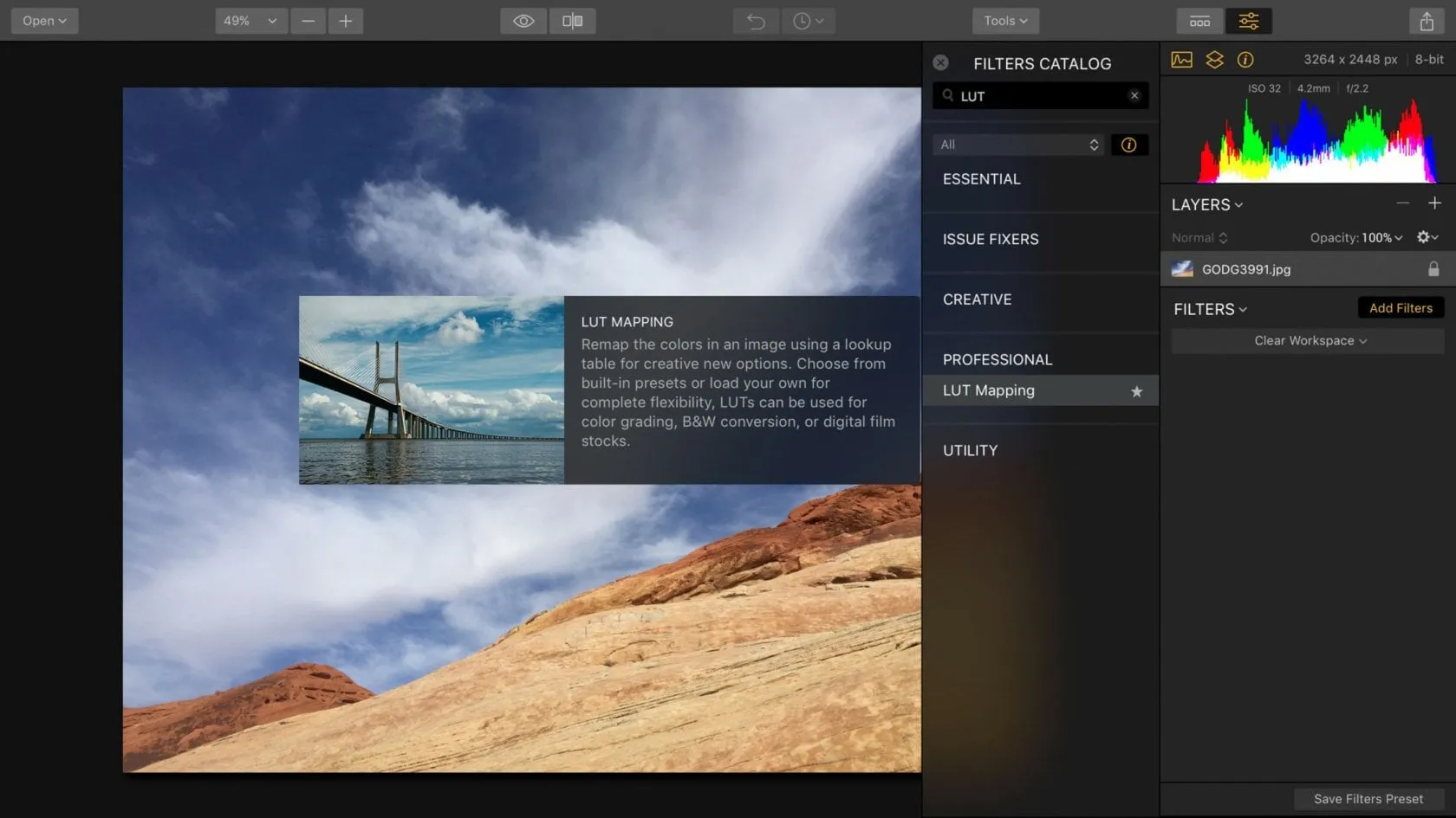 As you can see, a lookup table is similar to a Curves adjustment, in that it can transform the color and tone. Luminar Neo includes the ability to apply LUTs to an image easily.